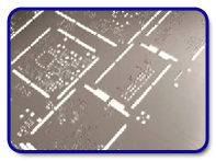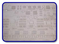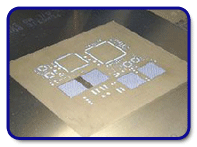 | Laser Cut and Chemically-Etched Stencils The Hybrid Stencil (H-FABᴁ) combines Laser-Cut and Chem-Etch technologies in a single stencil. This technology is for applications having a small number of total apertures (6,000 to 12,000). |  | ||
